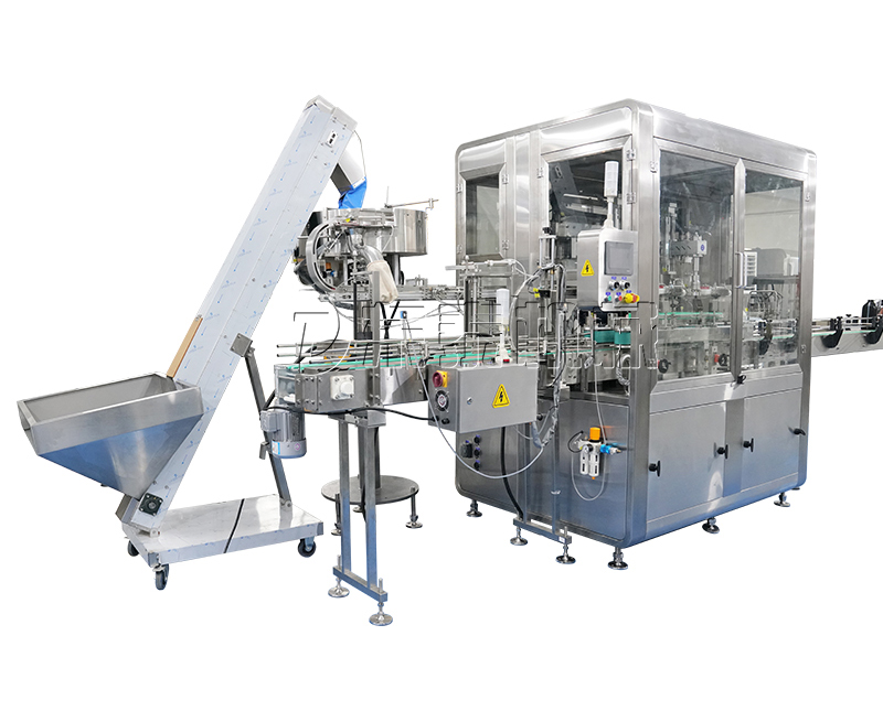 2、品質高:跟隨式旋蓋,旋蓋過程不停頓,不晃液,不污染瓶口、瓶身及輸送帶,確