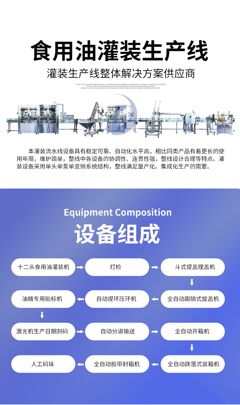 那么,全自動食用油灌裝機是如何進行自動灌裝的呢?總的來說,它的工作原理就是通過輸送系統(tǒng)將油桶輸送到灌裝頭下方,然后灌裝頭會根據(jù)設定的參數(shù)自動進行灌裝。當所有的灌裝任務完成后,操作人員需要手動關閉機器。這種全自動化的生產(chǎn)方式極大程度地提高了生產(chǎn)效率,也減少了人力成本的使用。