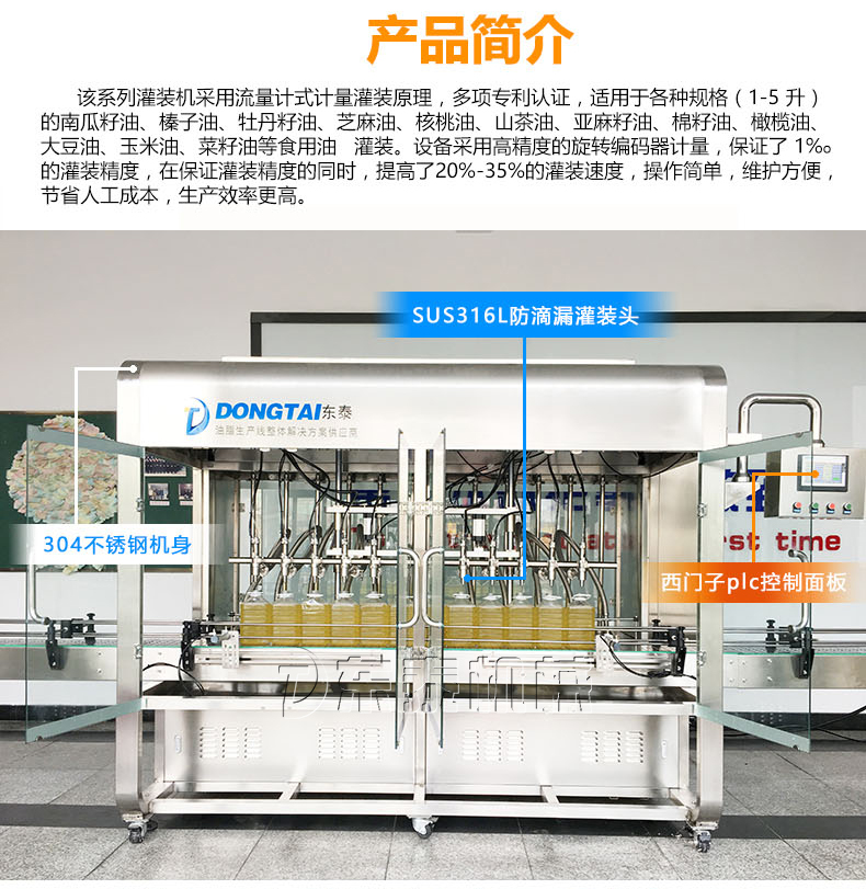適用于各種規(guī)格(1-5升)的南瓜籽油、榛子油、牡丹籽油、芝麻油、核桃油、山茶油、亞麻籽油、棉籽油、橄欖油、大豆油、玉米油、菜籽油等食用油灌裝。